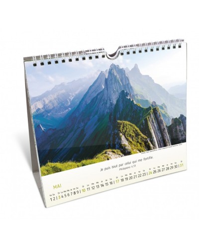 Voici un calendrier qui vous fera découvrir de merveilleux paysages de montagnes à travers le monde. Des textes bibliques soigneusement choisis qui mettent en valeur ces belles photographies. Au format maxi carte postale, faites-les découvrir également à vos proches.