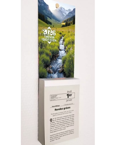 Mettez du divin dans votre quotidien en effeuillant jour après jour votre calendrier Le Trésor Quotidien c’est : - 365 occasions de découvrir l’Évangile et/ou d’être édifié grâce à... - Près d’une cinquantaine de rédacteurs (pasteurs et auteurs des Assemblées De Dieu) vous assurant... - La sécurité de la doctrine biblique, et elle seule, au travers de... - L’empreinte de l’identité pentecôtiste avec, en bonus... - Un plan pour lire toute la Bible en un an. Un jeune couple témoigne : “C’est phénoménal pour nous cette année : à chaque fois que nous devons prendre une décision, après en avoir parlé ensemble et à Dieu, le feuillet du jour nous apporte soit une confirmation, soit un clin d’œil, soit une piste de réflexion nouvelle, soit ...