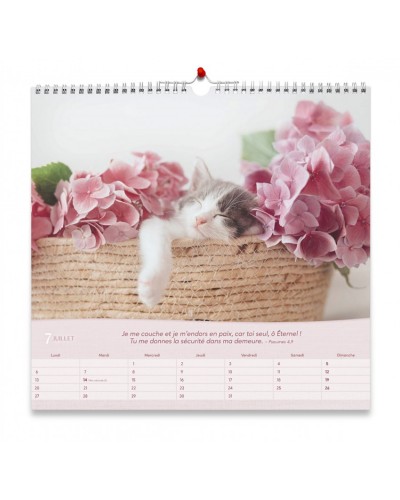 Calendriers 2 en 1 (Recto - Verso). Chaque calendrier de cette série a un calendrier supplémentaire imprimé au dos. De cette façon, vous pouvez au moment voulu tourner le calendrier et profiter d'un autre thème. Voici la combinaison : • Oiseaux / Chats • . Tous les calendriers sont agrémentés de photos et de versets bibliques.